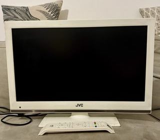 Téléviseur JVC blanc LED 54cm (22 pouces) avec télécommande et lecteur DVD intégré. En très bon état, fonctionne à la perfection.