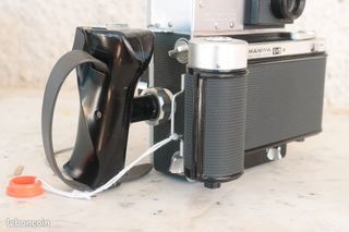Appareil photo argentique de collection en état de fonctionnement. Il a la particularité de fonctionner aussi comme une chambre photographique et permet de faire du 6/9. Cet appar