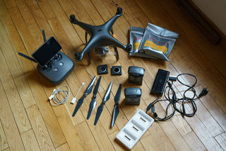 Drone Phantom 4 pro + obsedian avec son certificat de conformité (homologué) Le lot comprend : Télécommande avec écran 8 hélices, dont 4, neuves 2 batteries avec chargeurs 2