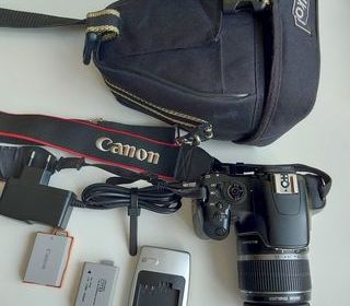 Appareil photo Canon EOS 450D (bouton de sélection cassé et perdu) modèle DS126181 avec objectif 58mm Canon EFS 18-55 mm fonctionnel mais bouton de sélection à réparer afin d'u