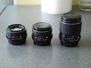 Lot trois objectifs Asahi pentax M Monture K -- 2,8 / 35 mm -- 1,7 / 50 mm -- 3,5 / 135 mm Avec bouchons AV et AR; Etat neuf