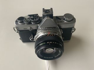 Produit Appareil photo OLYMPUS OM2, avec un objectif Zuico de 50 mm . Appareil sorti en 1975 fut le seul à l'époque a posséder 2 cellules photo-électriques ,à l'intérieur de l'a