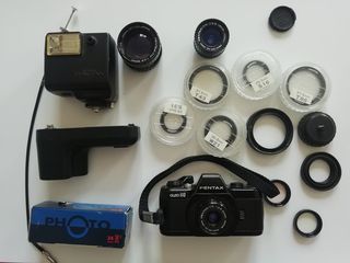 Appareil photo pentax auto 110 avec moteur, flash objectifs et lentilles macro et filtres (comme sur la photo) avec une pelicule ancienne mais utile pour faire ces cartouches soit-