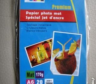 Papier photo mat, Spécial jet d'encre, 170 g, A6 (10 x 15 cm), 20 feuilles, jusqu'à 2880 dpi. Sous blister non ouvert. Prix: 4 € . A prendre sur place à Vandoeuvre-Les-Nancy (M