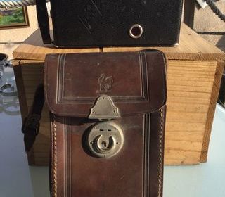 Ancien Appareil photo argentique à soufflet Agfa film des années 30 fabriqué en Allemagne avec sa sacoche d'origine en cuir Appareil avec objectif ANASTIGMAT JGESTAR F:8.8 Ap