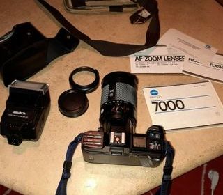 Appareil photo MINOLTA 7000 + valise de transport comme neuve + flash MINOLTA 2800 AF + zoom MINOLTA AF 200 MM LENSES + guide d'utilisation