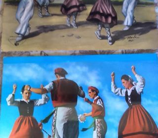 2 disque un 33 tours et un 45 tours unique , très rare , collector, en format carte postale, SOUVENIR PAYS BASQUE, groupe folklorique, mis sous verre pour protection