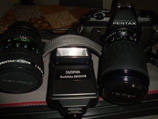 à vendre : appareil photo argentique Pentax P30 N avec objectif supplémentaire Vivitar, mode d'emploi, flash, flexible déclencheur, sacoche le tout en parfait état pas d'en