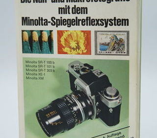 Livre en allemand sur l'utilisation des appareils photo Minolta SRT 100b, 101b, 303b, XE-1 et XM: "Die Nah-und Makrofotografie mit dem Minolta-Spiegelreflexsystem". Photos suppl