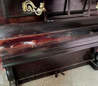 PIANO DROIT ANCIEN AVEC POIGNEES ET CHANDELIERS