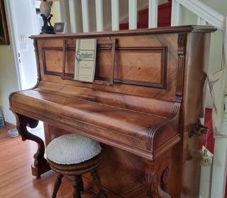 Piano droit ancien signé "J. Lary Paris Médailles d'or" Numéro de série 7839 Dimension H. 127 cm ; L. 131 cm ; l. 59 cm