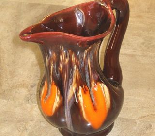 Vends Pichet en céramique de Vallauris, de couleurs marron et orange. Il date des années 50 ou 60. Design typiquement vintage. Hauteur = environ 23,5 cm. Il est en très bon état.