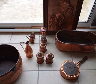 Lot comprenant chaudron jardinière cadre petit objet représentant une petite cafetière petit pichet