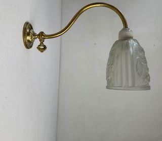 ENVOI POSSIBLE Achat sécurisé sur notre site internet nikel-forms Adresse sur simple demande Belle applique Art-Déco en laiton et verre. En bel état général. A noter quelque