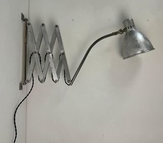 ENVOI POSSIBLE Achat sécurisé sur notre site internet nikel-forms Adresse sur simple demande Belle lampe accordéon d'atelier en métal. Années 1950. Déplacement de gauche à d