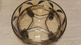 En métal et soucoupe en plastique. Décor feuilles. Diamètre 36 cm.
