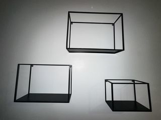 À vendre : ensemble de 3 étagères murales en métal noir, au design épuré et moderne. Idéal pour exposer plantes, cadres, petits objets déco? ? Dimensions : ? Grande : 28 cm de