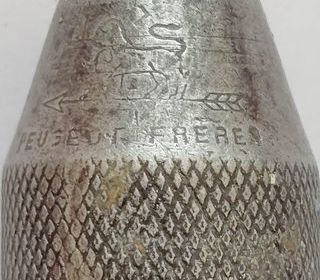 Ancienne chignole à main "Peugeot Frères" datant des années 1940 et toujours opérationnelle. de 30 cm de long sur 12 cm de large, de manivelle à poignée. son poids (moins de 1kg