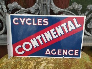 Ancienne Enseigne Plaque Émaillée Cycles Continental Agence Longueur 50cm, hauteur 30cm Bon état, présence de petits accidents.