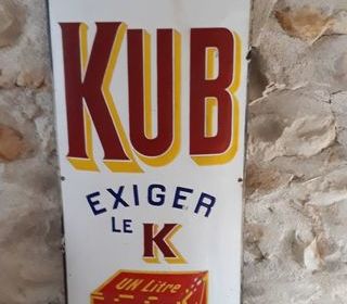 Ancienne plaque, émaillée, bombée, d'épicerie. Elle est donc d'origine et date du tout début des année 1910. Son surnom est " chapeau de gendarme ". Il existait d'autres versions p