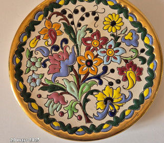 Belle plaque assiette céramique vintage Sévillarte avec placage d'or 24kt. un beau bouquet de fleurs D'inspiration mauresque, Assiette de decoration murale 1960 dimensions 17 c