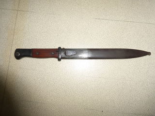 Baionnette Allemande Mauser 84/98 3e type plaquettes en bois fabricant asw en 1943 Le même fabricant 43 asw et la date 43 pour la baionnette et le fourreau mais pas le même N°.