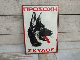 Ancienne Plaque Tôle Attention au Chien Berger Allemand Grèce Hauteur 32cm, largeur 23cm Bon état, présence de légère usure, rayures et déformations
