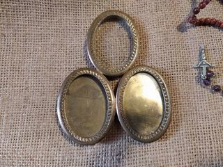 Ancien Cadre Photo Trois Portraits Laiton Style Louis XVI Dimensions : Hauteur 10cm, largeur 8,5cm, à vue 5cm x 3,5cm. État : Présence de déformations au dos. Il manque une p