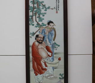 PLAQUE CHINOISE HOMME VENTRU ET FEMME SIGNE Etiquette n° 713 Dimension 78.2cm X 25.5 cm Prix 900 euros Etat de l'objet est visible sur les toute les photos .