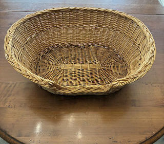 Panier en osier pour chat ou petit chien, en bon état. Revente consécutive à la perte de mon chat. - Dimensions en cm: Largeur 54 x Profondeur 38 x Hauteur de 9 à 18 - Dimensions