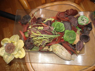 plateau rectangulaire en plastique dur avec fleurs artificielles; les 2 photos sont les mêmes. (vues sans et avec flasch) contact : a2022 ou a2018 ou v2022