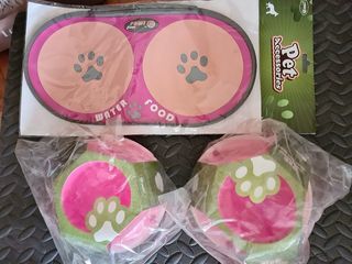 Lot de 2 gamelles neuves couleur fushia et support plateau. Neuf. Plaque identifiable à mettre sur le dessus. Le tout est neuf