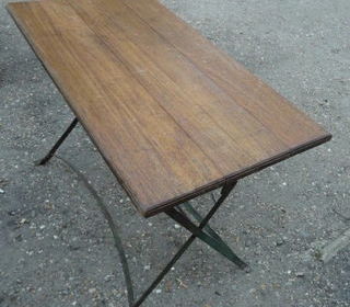table de bistro pliante plateau châtaigné:100x54x74cm au plus haut, piétement fonte de fer, très belle état général.