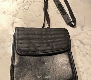 Cartable en cuir et toile, pour ordinateur ou tous autres usages, marque Calvin Klein, poignet, devant un grand rabat à fermeture éclair, sur le coté une poche avec fermeture éclai
