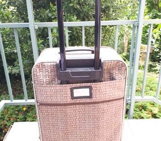 Bon état et propre 2 Coins renforcés Très stable sur 5 roulettes 2 Poignées plus une poignée télescopique Fermeture à zip à code 3 chiffres 1 Sangle de maintien 1 Pochette à