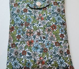 Pochette pour livre broché. Confectionnée en coton tissé imprimé pour l'extérieur, doublée d'un coton uni à l'intérieur et ouatinée pour une tenue souple et protectrice. Fermetu
