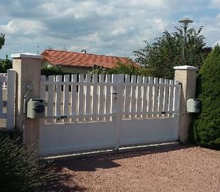 Portail 2 battants PVC blanc moteur 3 ans d'âge Dimensions 3 m x 1,25 de hauteur