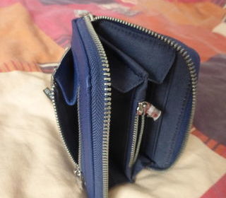 PORTE MONNAIE bleu - zippé - intérieur : 4 portes cartes, 1 zippé au centre et 2 sur les côtés extérieur : 1 poche extérieur zippée 12.5 x 2 x 9.5 cm NEUF