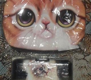 2 articles thème Chat. NEUFS dans leur emballage. -Porte monnaie. Tête Chat La queue est la fermeture éclaire Dimensions: 15cm X 12cm. -Porte cartes. Chat Dimensions: 10,5c
