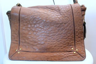 Sac IGOR de JEROME DREYFUSS cuir beige doublé toile H 20 cm L 25 cm P 10 cm fermeture aimant pression sous rabat 1 poche zippée avec portes cartes attache porte clefs avec t