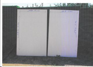 Portes de garage en PVC blanc neuves. Elles n'ont jamais été montées suite à erreur de dimensions du fournisseur. Hauteur 190 cm largeur 121.5 cm pour une et 119 cm pour l'autre.