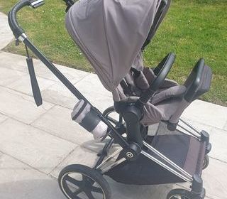 Je vends une poussette trio trois éléments: poussette, nacelle, cosy, chacun à fixer sur un chassis muni de 4 roues marque Bébé Confort coloris marron toutes les ceintures de s