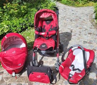 Poussette avec habillage de pluie Nacelle avec fixation pour la voiture, jamais utilisée. Cosy avec protection soleil. Sac
