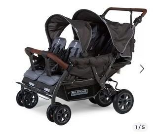 Poussette double pratique et fonctionnelle par ses dimensions et ses bretelles qui permet de la porter facilement. Ses dimensions fermée sont de 50 cm de long, 62 cm de haut et 38