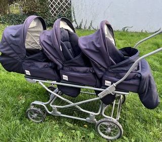 Bonjour, je vends ma poussette triple de marque Inglesina, avec trois tabliers. L'ensemble est en bon état.