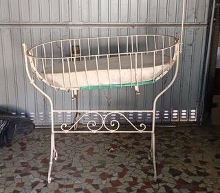 berceau naissance metal blan tres bonne etat avec voile et habillage complet