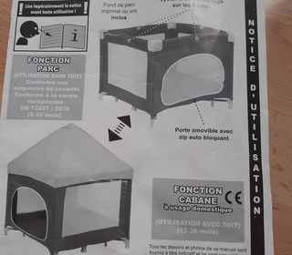 vend parc bébé carré90 sur 90 couleur beige blanc fait fonction cabane avec une entrée sur le coté une housse de transport baurdeaux à venir chercher a mon domicile