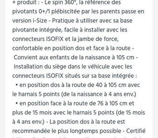 Siège auto a l état neuf Isofix et jambes de firce 2 guides installation pour isofix Réducteur pour nouveau né Rotatif inclinable Dos à la route de la naissance a 15 mois Fac