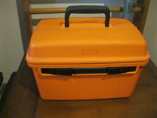 boite de rangement en plastique orange tres bon etat