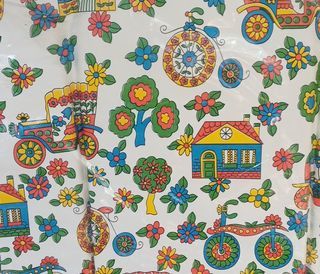 matelas à langer pour le change de bébé enduit pvc imperméable gamme de puériculture NEUF encore sous emballage jamais ouvert fond blanc avec motifs multicolores : rouge jaune bl